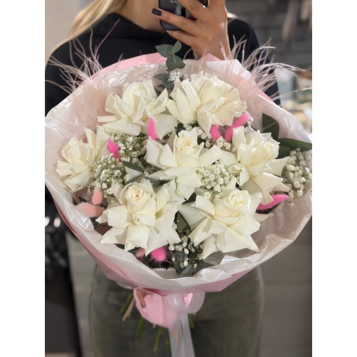 Цвет розы может отличаться в зависимости от наличия (белая, розовая, подкрашенная).