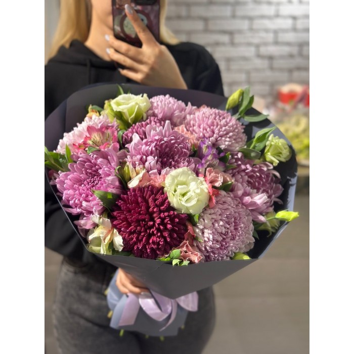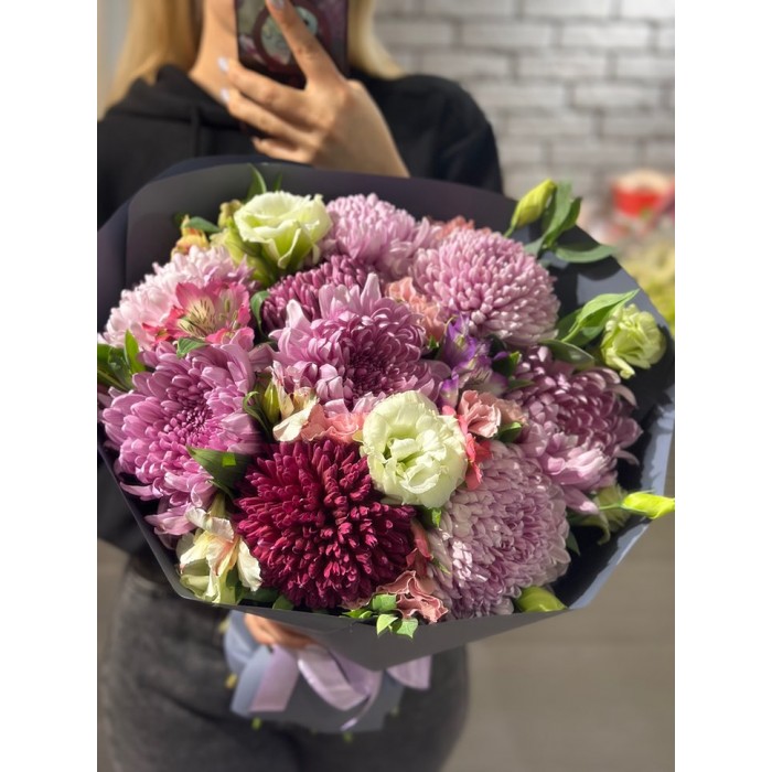 Насыщенный букет из смешанного состава цветов.