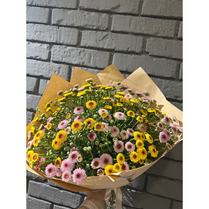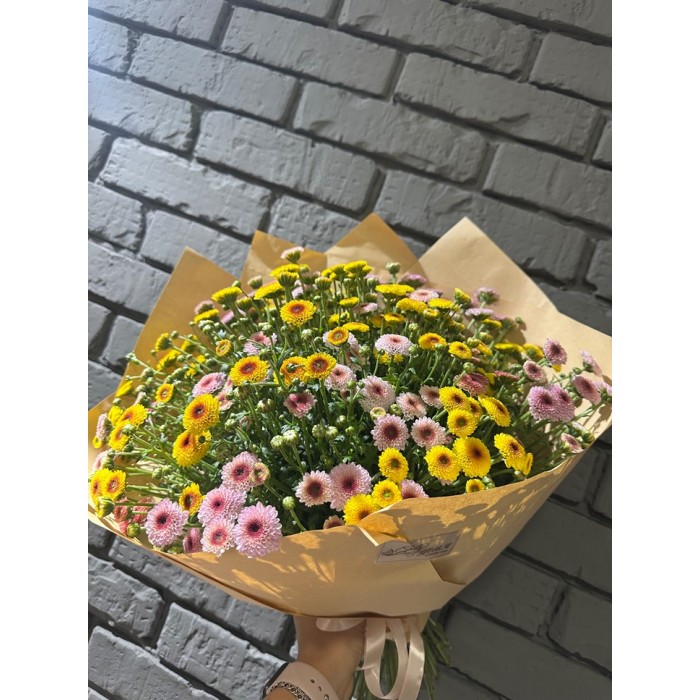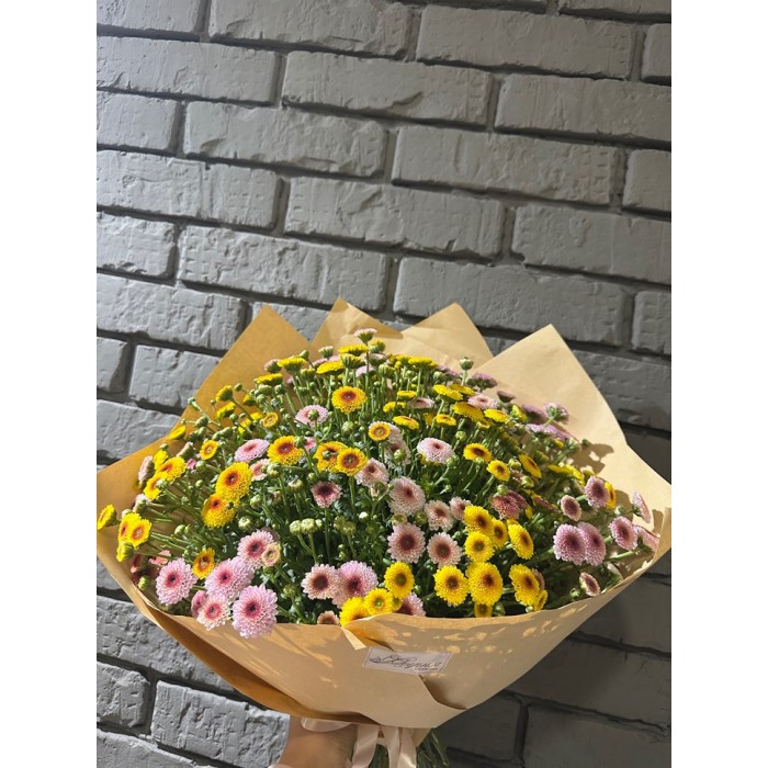 Моно букет из цветной кустовой хризантемы Пуговки.