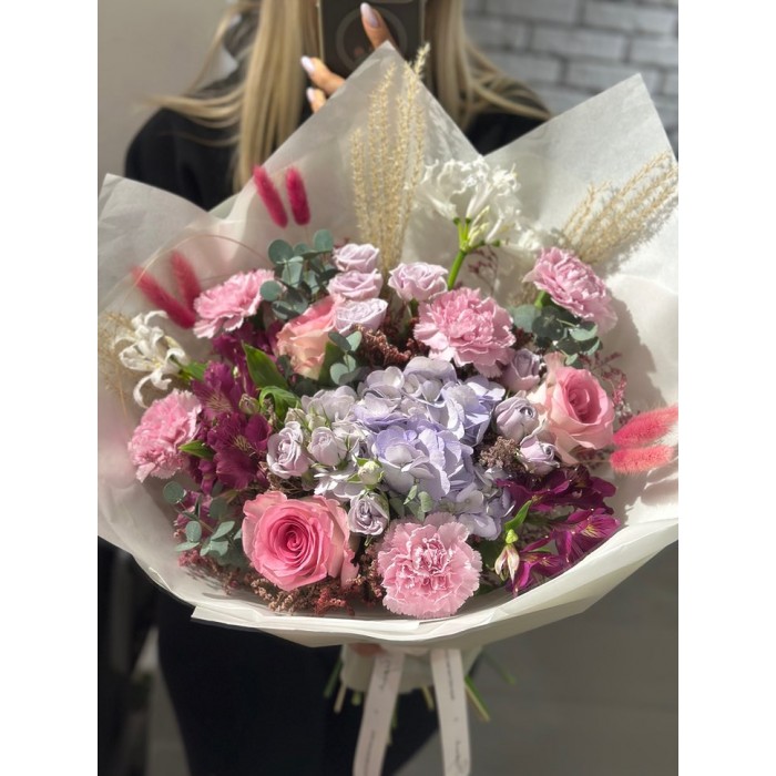 Зимний вариант нашего самого популярного букета Lovely. Нежный и стильный букет, в основе которого гортензия.